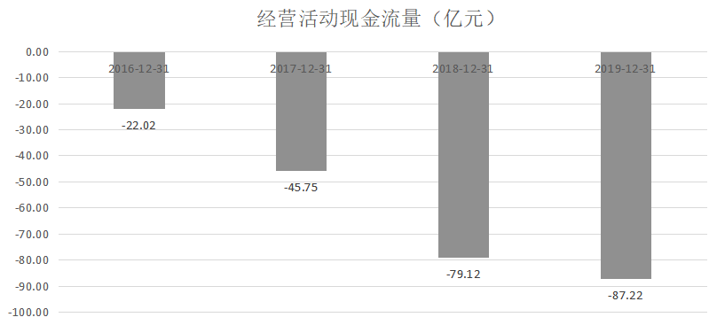 来看下蔚来的经营现金流情况。蔚来汽车始终处于亏损状态,经营现金流持续为负,目前还处在持续烧钱阶段。
