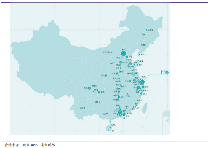 (蔚来换电站地图)2020年蔚来累计建成的换电站达131个,覆盖58个城市。随着蔚来车辆交付数量的提升,蔚来的换电服务建设成本、调度运输成本、人力成本将大幅攀升。