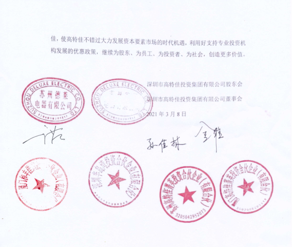 2021年3月3日,高特佳召开了一次临时股东会议,由二股东德莱电器主持。据悉,会议同时以现场和腾讯会议方式进行,公司在册股东共14位,其中有10位参会,但高特佳大股东、现任董事长金惠丽控制的4家公司均不在场。