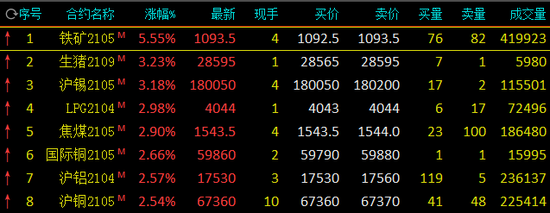 热点栏目3月11日,国内商品期市收盘涨跌互现,油脂油料跌幅居前,菜粕大跌近5%;黑色系涨跌互现,铁矿石涨超5%,有色金属表现活跃,沪锡涨超3%。