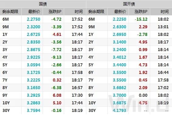 1、国开行3个月、1年、3年、5年期金融债中标收益率分别为2.1179%、2.5385%、3.1237%、3.3414%,投标倍数分别为4.85、3.05、5.06、5.38。