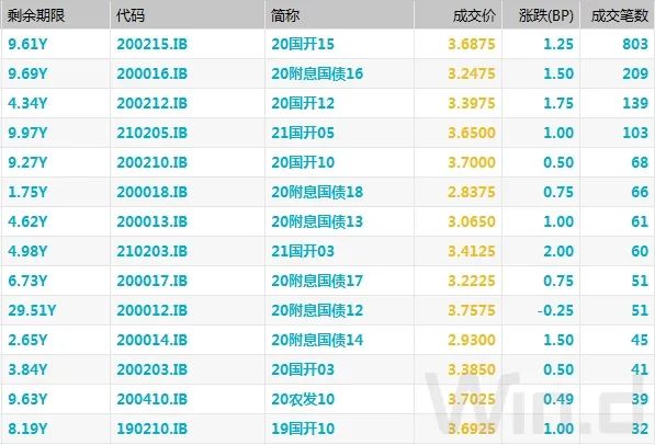 银行间主要利率债收益率上行1-2bp,10年期国开活跃券200215收益率上行1.25bp报3.6875%,10年期国债活跃券200016收益率上行1.5bp报3.2475%。上海一位券商交易员称,近期整体走势看,现券仍处在区间震荡态势,对最新通胀和金融数据反应也并不明显,若要走出趋势性行情,还需要新的刺激因素。后续关注未来地方债供给影响。