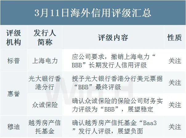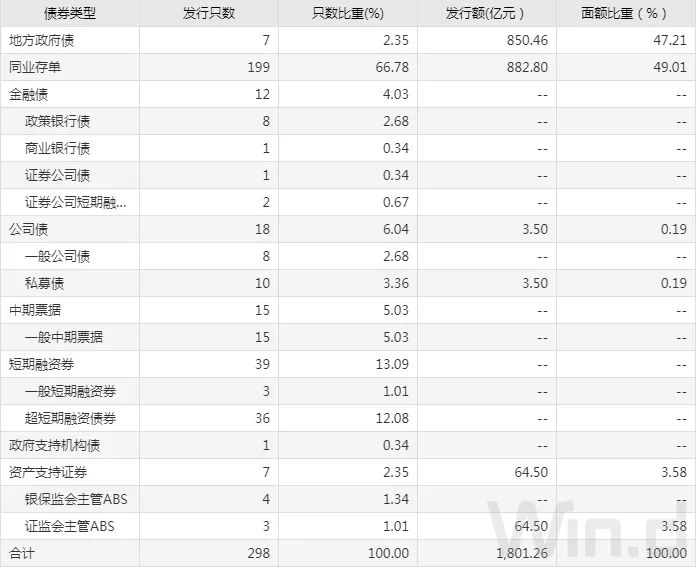 从发债类型看,3月11日,债券市场共发行地方政府债7只,同业存单199只,金融债12只,公司债18只,中期票据15只,短期融资券39只,政府支持机构债1只,资产支持证券7只。