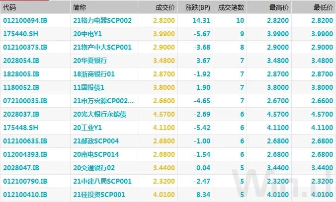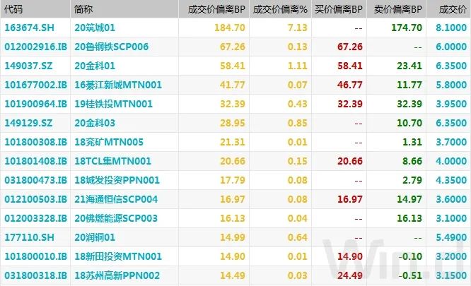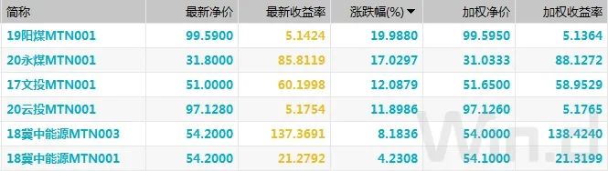 信用债行情整体稳定,少数网红债波动较大。“19阳煤MTN001”涨近20%,“20永煤MTN001”涨近17%,“17文投MTN001”涨逾12%,“20云投MTN001”涨近12%,“18冀中能源MTN003”涨逾8%,“18冀中能源MTN001”涨超4%。“19不动06”跌逾13%,“19海淀国资MTN003”跌逾12%,“19新中泰MTN001”跌超10%。