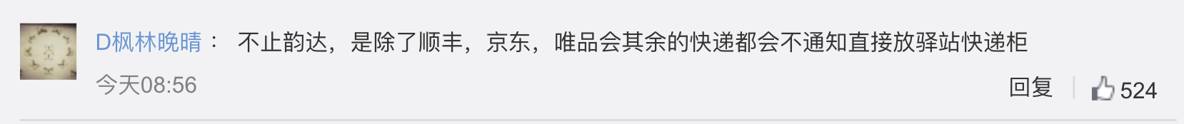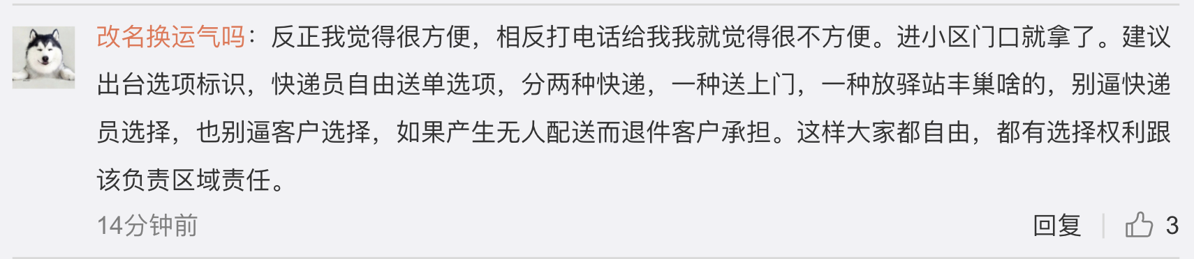 然而,也有网友认为将快递直接放驿站“很方便”。