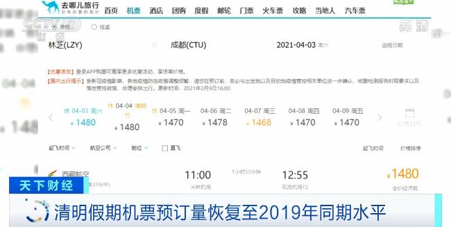 play向前向后原标题:清明假期机票预订量恢复至2019年同期水平