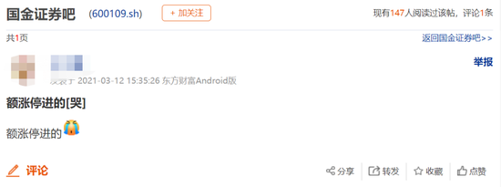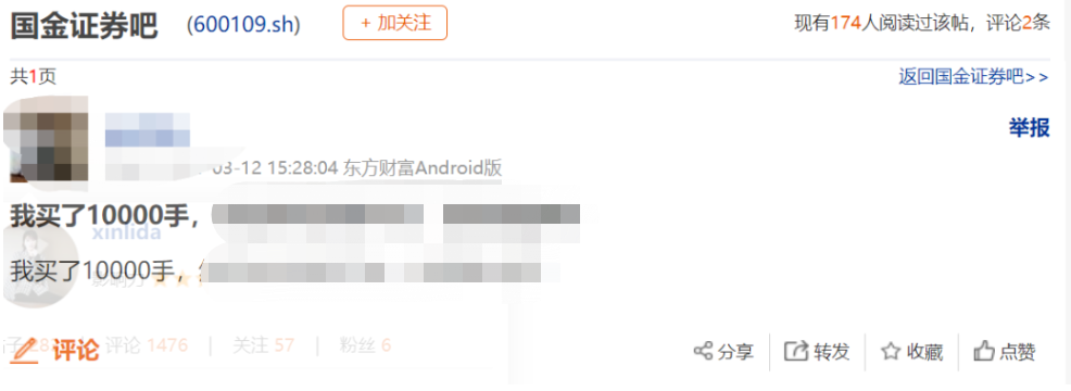 有投资者在股吧称自己买了10000手,然后就遇上了辟谣。即便按国金证券今日最低的12.56元计算,10000手也要价值1256万元。