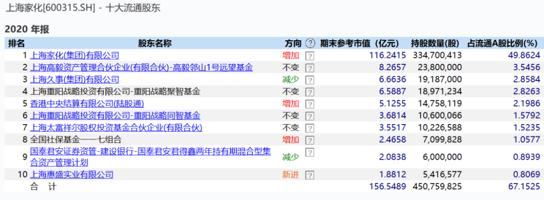 冯柳管理的高毅邻山1号远望基金和重阳投资的重阳战略聚智基金、重阳战略同智基金,仍坚定持有上海家化,持股数量维持不变。