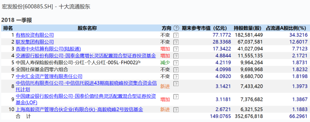 此外,四季度邓晓峰还减持了宏发股份。2018年一季度末,邓晓峰管理的两只产品首次出现在宏发股份的前十大流通股东名单中,去年三季度末,这两只产品还分别为第五和第七大流通股东。不过,去年四季度,高毅晓峰2号致信基金减持了323.12万股,中信信托锐进43期高毅晓峰投资集合资金信托计划也从宏发股份的前十大流通股东名单中消失。