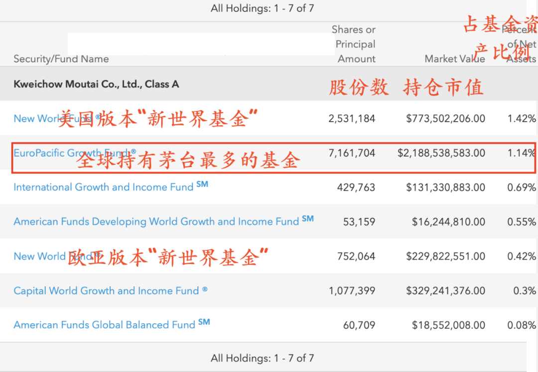 资本集团旗下持有茅台最多的基金为欧洲亚太成长基金,也即全球持有茅台最多的基金。这只基金2月持有茅台股份数变化暂无数据可查。不过,上述新世界基金是资本集团旗下持有茅台第二多的基金,“含茅量”在全球基金产品中也名列前茅。