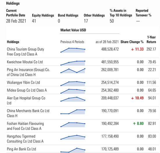 对照上面欧亚版本和美国版本“新世界基金”,可以发现,前十大重仓股有9只重合。不仅股票重合度非常高,而且重仓排名也非常接近。美国版中仅一家公司没有出现在欧亚版前十大重仓股中,即全球性矿业公司——淡水河谷。机构人士认为,同一班基金经理管理的同一基金在不同市场销售时也有可能根据当地的监管规定做出个别调整。因此很有可能美国版本同期也小幅增持了贵州茅台,而该版本的规模则超过500亿美元。