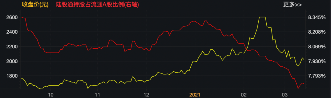 尽管不少海外大户2月对茅台按兵不动。不过,仍有海外资金经过近期的市场颠簸,心有余悸,选择撤出。