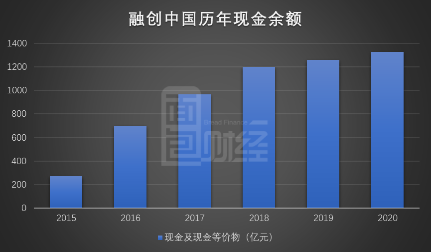 近年来,融创中国现金余额稳步上升。数据显示,公司截至2020年末的现金余额达到1326.5亿元,其中包括非受限制现金987.1亿元。