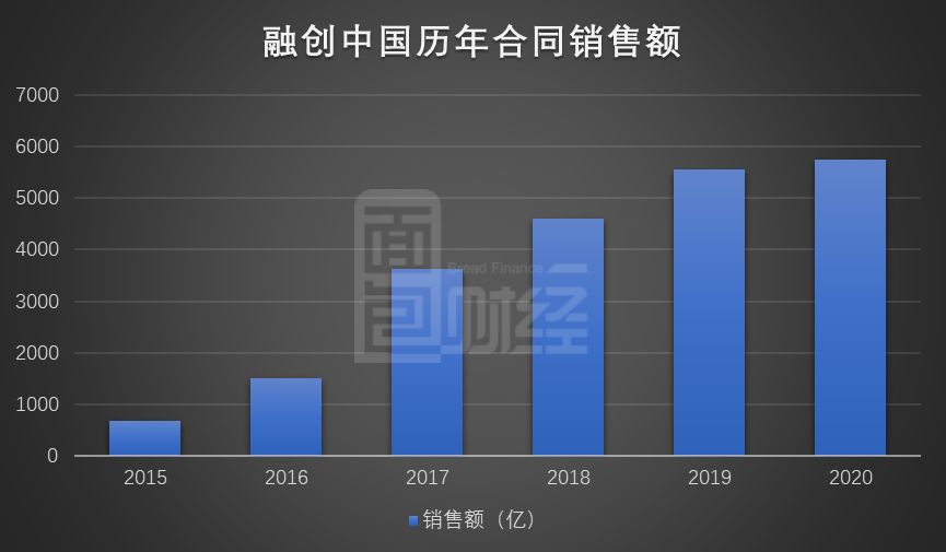 2020年,融创中国合同销售金额为5752.6亿元,稳居行业前四。