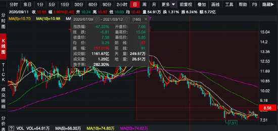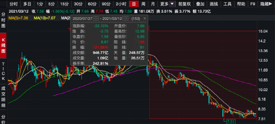 截至3月12日收盘,世纪华通报7.58元/股,最新市值564.9亿元。世纪华通股价已自去年7月高点15.04元跌超47%,市值蒸发582.82亿元。