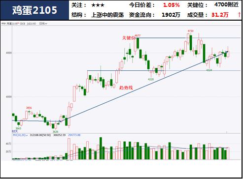 供给端,由于在产鸡存栏下降,短期看供给会有所缩紧,而需求端由于学校开学等因素也缓慢恢复。盘中小幅上探,目前高位震荡偏强,关注盘中上方能否出现量价齐升走势,打开上行空间。耐心观望。