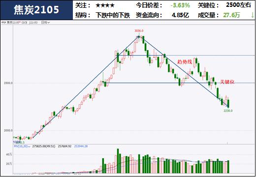 2.盘面: 焦炭今日盘中走弱,随着焦价第四轮调降的开始,焦炭下方空间打开,空头结构明显