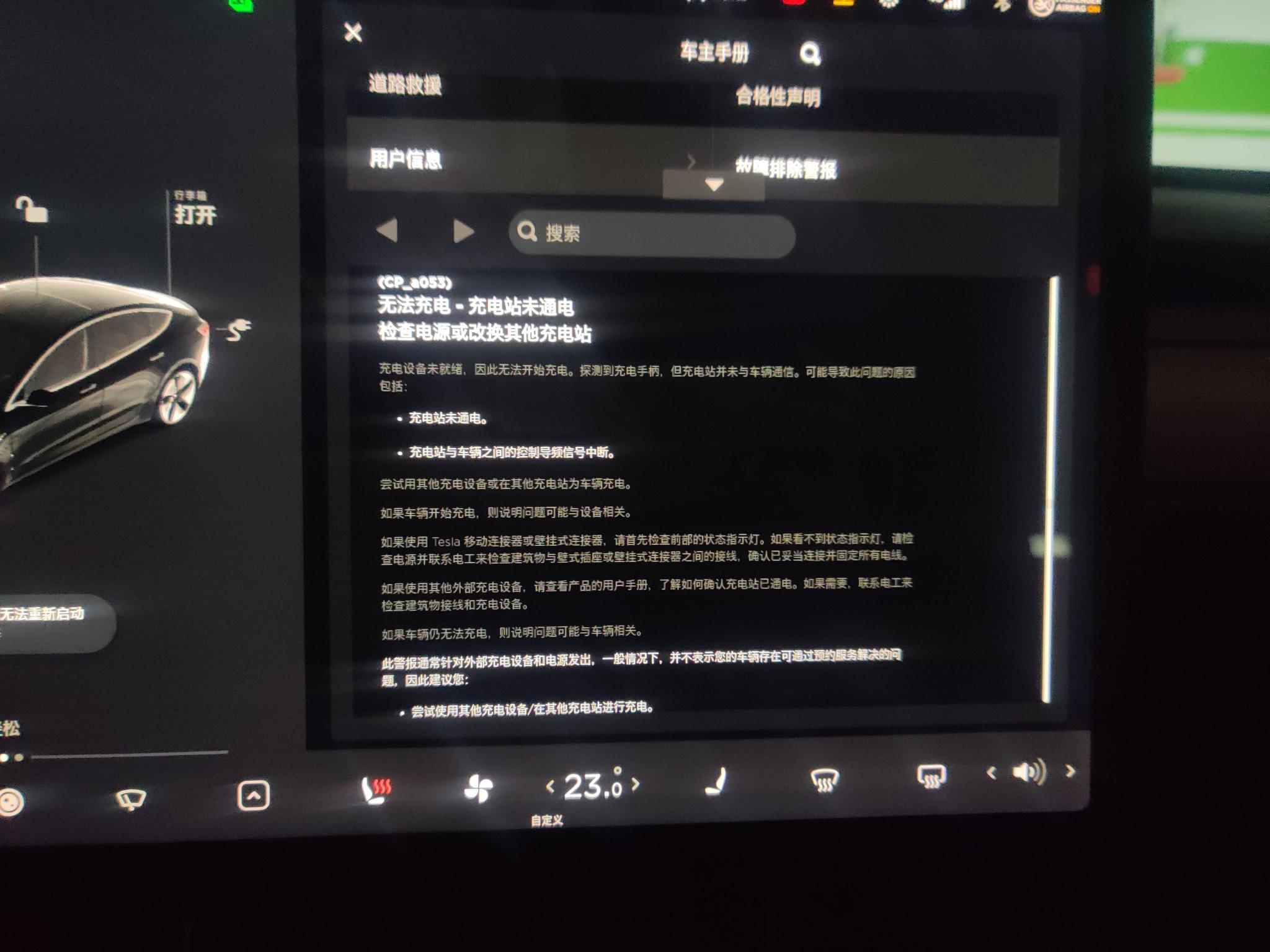 车主吴蕊的Model3无法启动时,车辆显示屏的部分内容。
