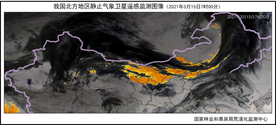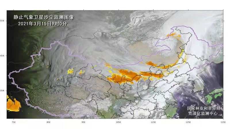 据国家林业和草原局荒漠化监测中心卫星影像和地面监测信息综合评估,本次沙尘天气主要起源于蒙古国。14日上午,蒙古国西南部发生沙尘暴天气,沙尘随气流向南移动,于14日傍晚,在蒙古国与内蒙古中西部交界处入境。内蒙古巴彦淖尔、二连浩特、包头等地相继发生沙尘暴,能见度低于1000米,PM10指数超过500微克/立方米,西北风6—8级,空气质量等级均为严重污染。15日凌晨,沙尘开始影响京津冀地区,北京受上游沙尘传输叠加大风扬沙作用影响,PM10浓度明显上升,PM10指数达到了2153微克/立方米,空气质量为严重污染。目前,沙尘还在继续向东南移动,将陆续影响吉林、黑龙江、河南、山东等地。
