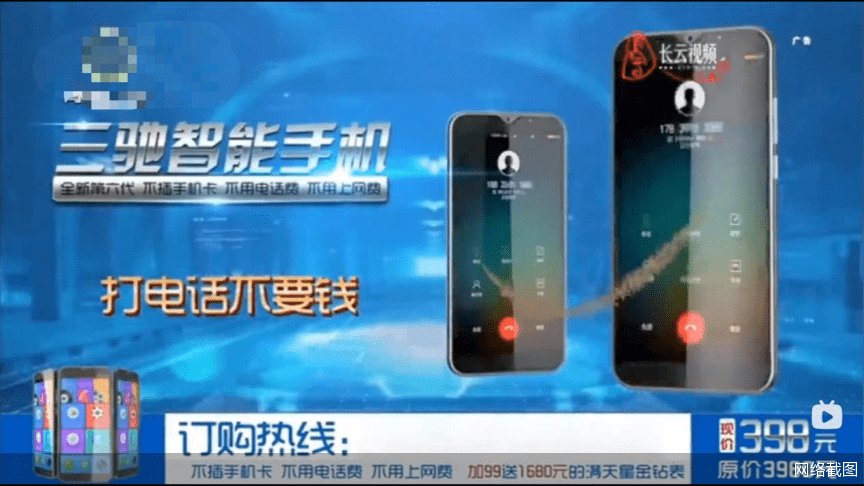 三驰智能老年机电视广告中声称该手机不用插电话卡、打电话不要钱