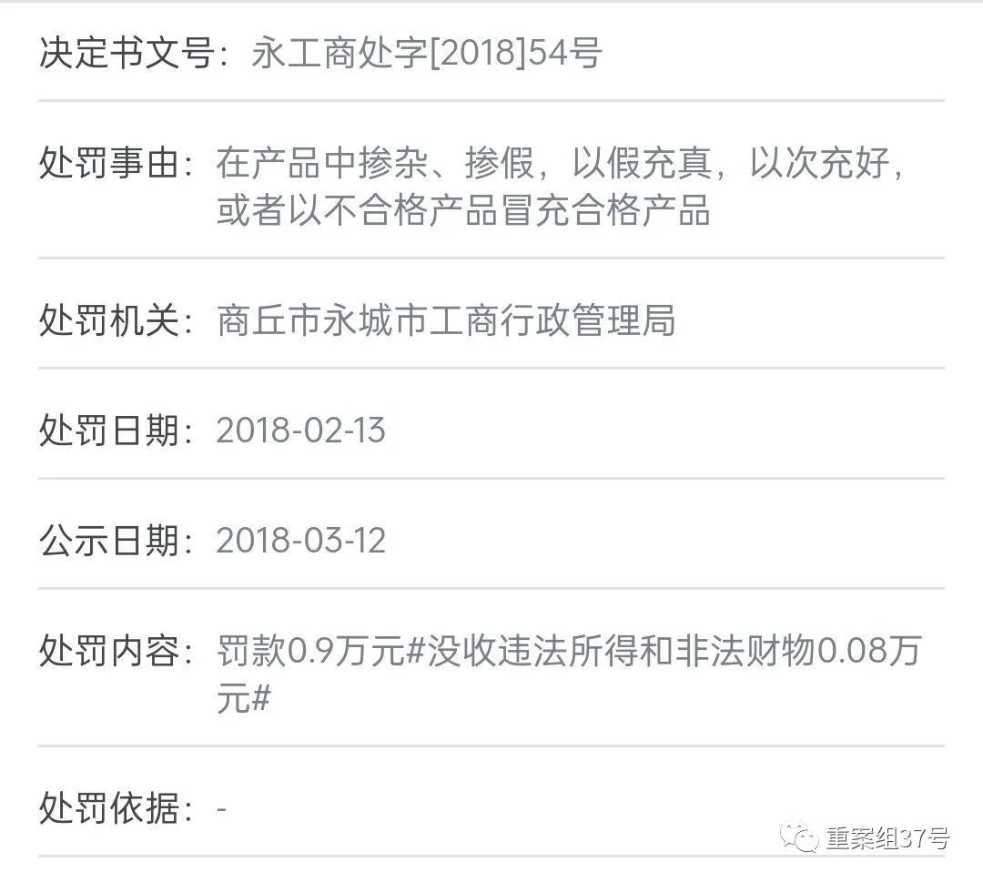 2017年3月29日,夏邑县工商局对其做出处罚,处罚事由为:在产品中掺杂、掺假,以假乱真,以次充好,或者以不合格产品冒充合格产品。处罚内容为:罚款9000元,没收违法所得和非法财物360元。此后,这家气站再无因掺假被查处的记录。