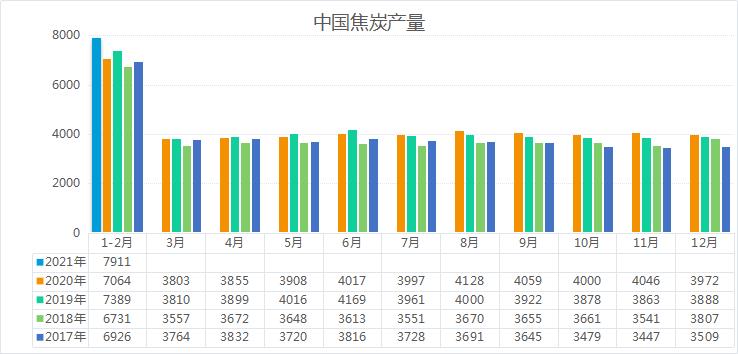 今年1-2月,我国焦炭产量为7911万吨,相比去年同期水平增长约1成。与此同时,1-2月焦炭日均产量达134.08万吨,明显高于12月份128.13万吨的日均产量。
