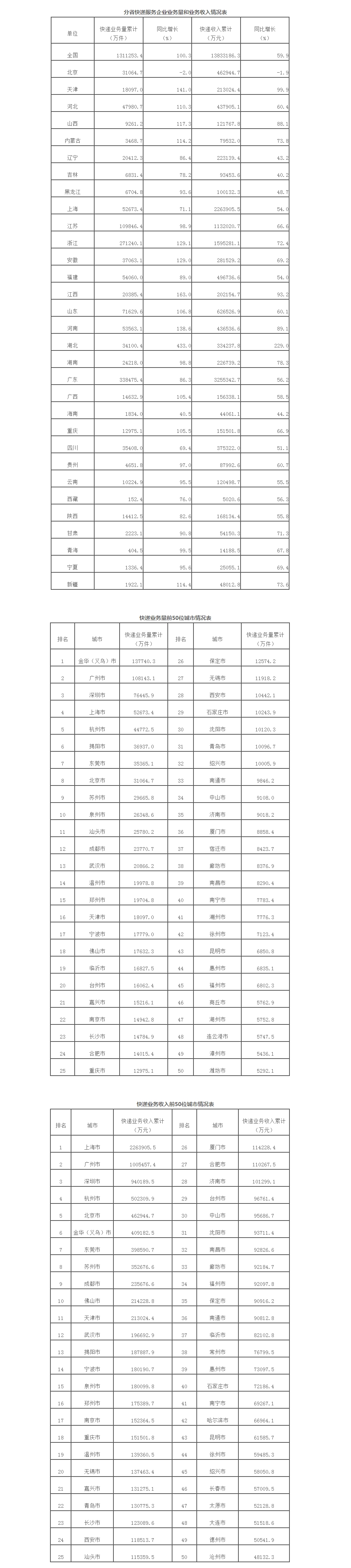 注:邮政行业业务总量、邮政服务业务总量按2020年不变单价计算,同比增长按照可比口径计算。