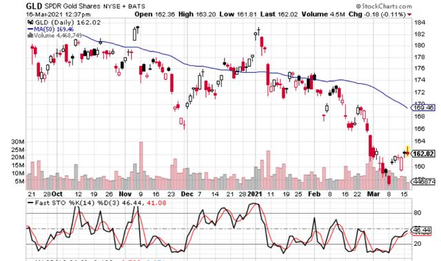最大看跌指数(3月和4月初持平)在5月实际上比黄金的当前价格略高,这意味着期权市场正更加看好黄金ETF。
