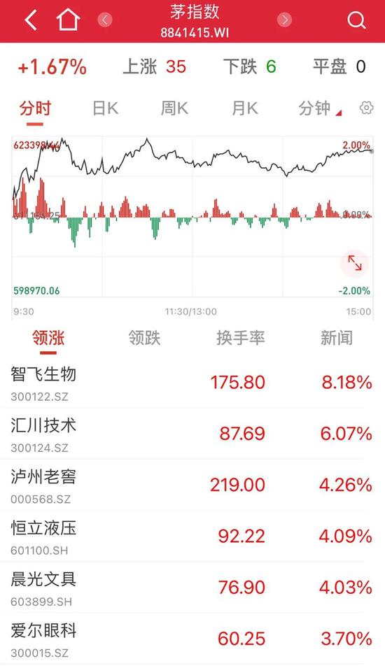 茅指数上涨1.67%,此前连续两个交易日上涨。
