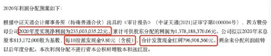 3月18日晚间,四方股份发布2020年报称,公司拟每10股派发现金9.80元(含税),合计发放现金红利近8亿元。值得注意的是,该公司去年全年归属股东净利润才3.4亿元。
