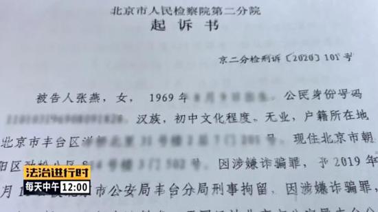 截至2019年7月,张燕的骗局暴雷了。随后,因涉嫌诈骗,张燕被公安机关刑事拘留。2020年1月,案件移交到了北京市人民检察院第二分院。