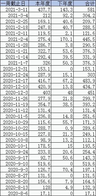 以下为USDA棉花周度出口销售数据一览表:(单位:千包)