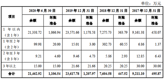 招股说明书只提供了按账龄组合计提坏账准备的应收账款的账龄结构,具体结构如下表所示: