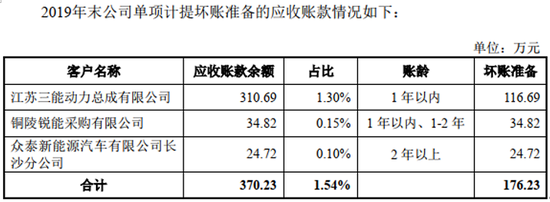 2019年,菱电电控应收账款期末余额中,有370.23万元是按单项计提坏账准备的应收账款,其账龄结构在首轮问询问题20回复中予以披露,具体如下表所示: