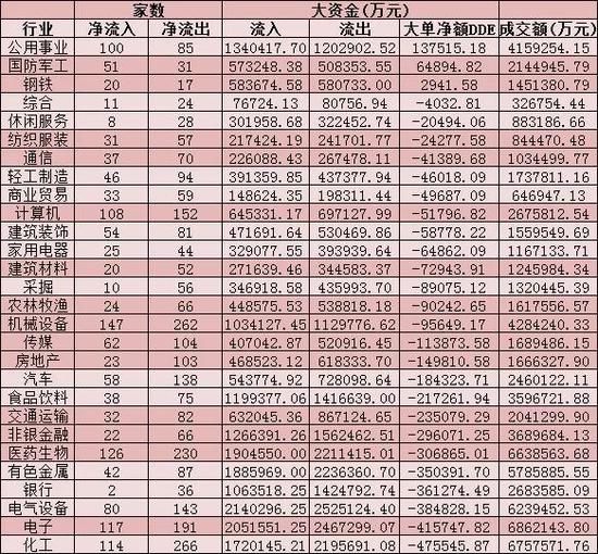 从资金层面看,周五,A股大单资金整体净流出399.5亿元,其中,有1431只个股呈现资金净流入,2677只个股呈现资金净流出。从申万一级的28个行业来看,仅有公用事业、国防军工、钢铁等3个行业呈现资金净净流入态势,分别为13.75亿元、6.49亿元和0.29亿元。其余25个行业均呈现资金净流出态势,其中,化工、电子、电气设备、银行、有色金属、医药生物等行业,资金净流出均超30亿元。