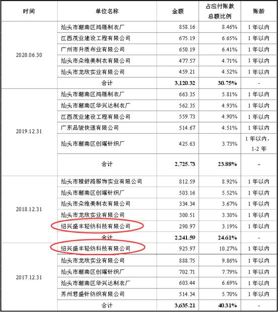 记者在招股书中查询发现,绍兴盛丰曾为洪兴实业2017年、2018年应付账款前五名供应商(图二),自2019年后退出洪兴实业应付账款前五名供应商。