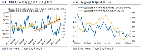 (二)我们在3.17《从微观结构看美债和A股》中提到,微观结构恶化也是推动美债利率短期波动超预期的主因。前期头寸大量积压叠加收益率要求提升共同带来美债交易结构恶化,而本周美联储表示SLR减免措施将于3月31日到期,将加剧长端美债收益率的短期波动。本轮美债利率的上行包含宏观经济、交易结构、政策预期等中短期多因素的共同作用:1. 经济基本面(实际增长)+通胀预期(价格补偿)继续推升;2. 前期头寸大量积压+收益率要求提升带来美债“交易结构恶化”;3. SLR限制和凸性对冲也将加剧长端美债收益率的短期波动。本周美联储表示SLR豁免未能延期,由此美国大型银行将面临补充一级资本或压降资产规模的压力,由此形成美债抛压,同时银行会在新的约束下提升对于资产回报率的要求,加剧美债收益率的波动,此外“凸性对冲”则可能在美债波动偏高的状态下进一步推波助澜。因此美联储将隔夜逆回购工具(o/n RRP)单个交易对手的限额从单日300亿美元提高到了800亿美元,以对美债利率形成间接的维稳与对冲。