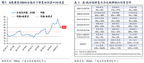 (五)暂避锋芒,扩散升级。微观结构恶化才是A股当下的核心矛盾,更直接受美债利率上行压力测试的美股反倒跌幅更小,表明A股的微观结构更为糟糕。随着A股漂亮150的估值向下修正至均值+1倍标准差,未来微观结构的修正由阶段一的“估值消化”进入阶段二的“负反馈”,即绝对收益者降低仓位、相对收益者结构调整,公募基金的净值散点较1月由聚拢走向3月的发散与均衡。但我们建议短期依然“避闹取静”,微观结构的部分指标出现好转但仍难言有效消化;从高低估值的修复距离来看与历史规律仍有空间。我们维持“扩散升级”的判断,而“碳中和”主题已经成为“扩散升级”的重要线索:A股上市公司产能利用率高位,供需紧平衡,继“后疫情”需求修复带来的涨价顺周期行情之后,“碳中和”供给收缩也会带来相关顺周期板块的涨价(预期)行情。建议继续把握“第三波顺周期行情”,重点关注“人少+逻辑改善”的方向:1. “涨价”主线的顺周期(有色金属/化工);2. 景气拐点确认的低估低配大金融(银行/保险);3. 主题关注“碳中和”供给收缩顺周期(钢铁/水泥/电解铝)。