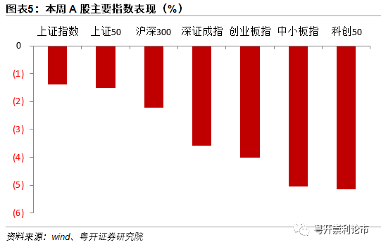 本周市场继续下跌,主要指数周线五连阴。我们认为目前A股市场处于震荡磨底过程,投资者不必太过悲观。