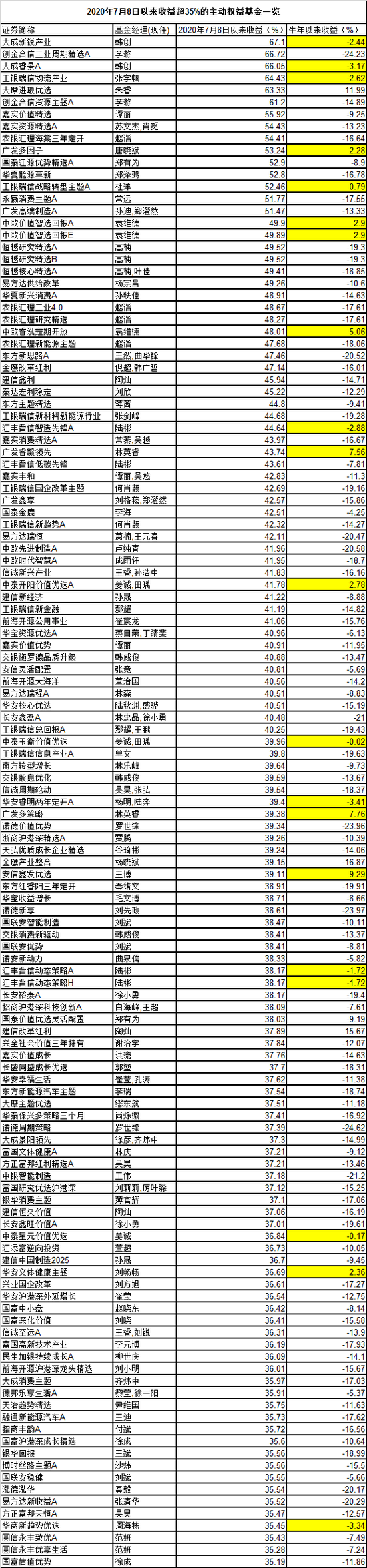 从这一波情况看,这期间表现较好的不少在牛年以来抗跌力不俗(2021年2月18日至3月19日收益),其中大成新锐产业、大成睿景A、工银瑞信你物流产业、广发多因子等都非常抗跌。(下图中标黄则为抗跌力较强的基金。)