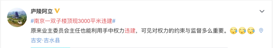 “南京一双子楼顶现3000平米违建”上热搜 网友:简直是空中别墅