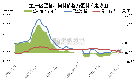 图1 主产区蛋价、饲料价格及蛋料差走势图