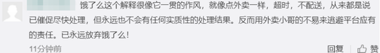 还有网友认为,作为外卖平台的饿了么没有履行应尽的监管职责,也应当对此次事件承担一定的责任。