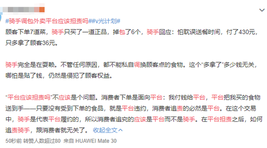 骑手回应:怕耽误送餐时间,付了430元,只多拿了顾客36元。