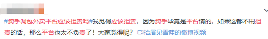 对此,有网友表示,外卖平台应该担责,因为骑手毕竟是平台请的。