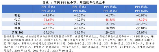 今年货币边际收紧,预计全年整体估值下跌,盈利向上。从概率上看,化工股在PPI环比向上阶段均能够取得高于沪深300的收益;当期PPI处于同比由负转正,环比持续上升阶段,结合上表对PPI同比和环比区间的划分,以及今年的“碳中和主线”,周期股中化工和煤炭可能相对较好。