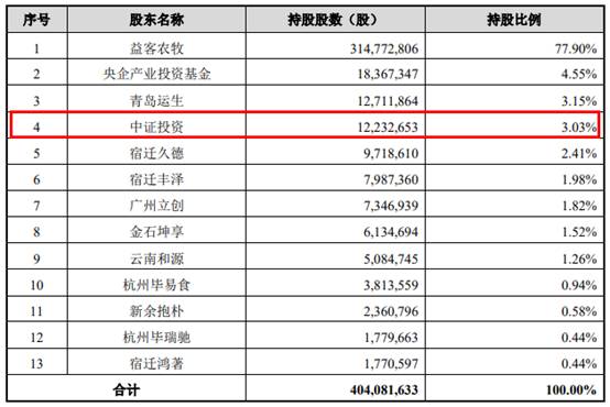 值得关注的是,益客食品此次发行的保荐机构中信证券,其全资子公司中证投资直接持有益客食品12,232,653股,占比3.03%,为益客食品的第四大股东。