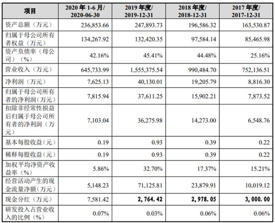 在财务数据方面,2017年至2020年上半年各期末,益客食品的资产总额分别为163,530.87万元、196,586.32万元、247,893.73万元和236,853.66万元,其中流动资产分别为71,723.42万元、78,487.23万元、109,087.79万元和84,274.36万元,占比43.86%、39.93%、44.01%和35.58%。