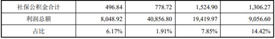 益客食品招股书中称根据测算,2017年至2020年1-6月,益客食品需要补缴的社保、公积金总额分别为1306.27万元、1524.90万元、778.72万元、496.84万元,其中2017年需补缴金额占利润总额比例达14.42%。