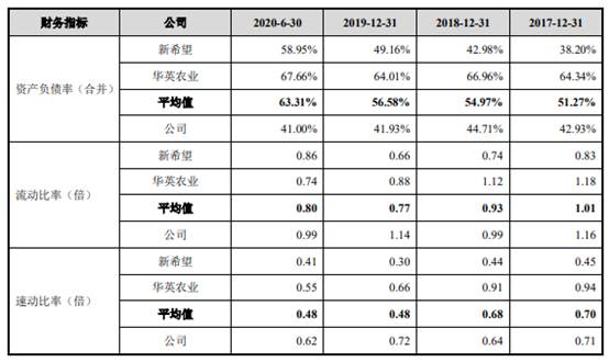 上述同期,同行业可比公司的资产负债率平均值分别为51.27%、54.97%、56.58%和63.31%,流动比率平均值分别为1.01、0.93、0.77和0.80,速动比率平均值分别0.70、0.68、0.48和0.48。